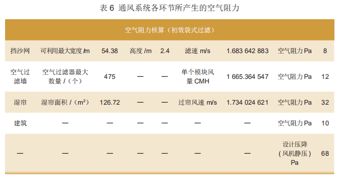 第二,在能滿足風(fēng)量需求的前提下,通風(fēng)系統(tǒng)各環(huán)節(jié)所產(chǎn)生的空氣阻力,如表6所示。