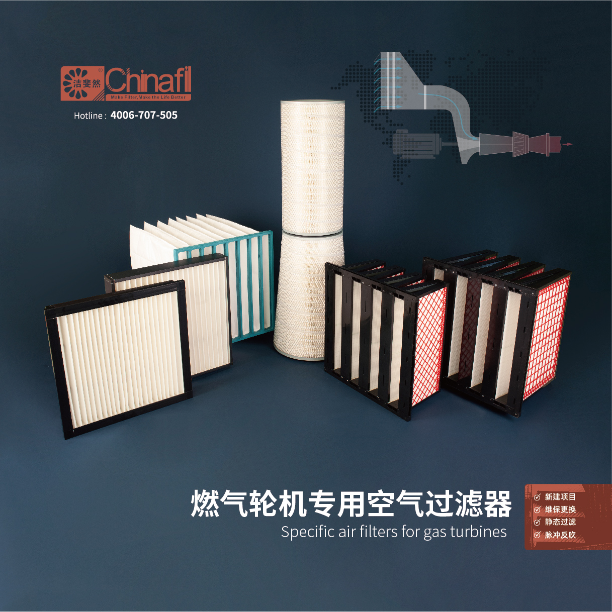 Chinafil provides various static filters of different efficiency levels and cylindrical dynamic pulse filters for gas turbine air intake systems, featuring high strength, low resistance, large dust-holding capacity, water resistance, salt corrosion resistance, etc. They have wide adaptability and operate stably in offshore, coastal, and inland environments.