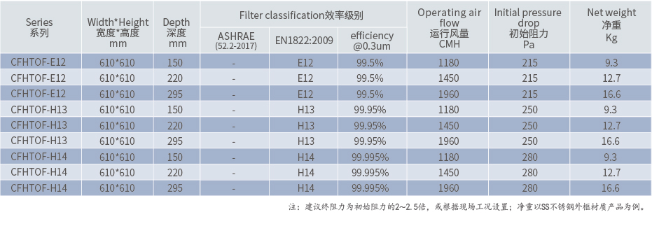 耐高溫過濾器CFHTOF,主要運(yùn)用于制藥廠的高溫滅菌隧道或者高溫烘房生產(chǎn)環(huán)節(jié),過濾工況中產(chǎn)生的焦油、煤煙、灰塵等顆粒,按效率等級主要可分為耐高溫中效過濾器、耐高溫高效過濾器;均選用玻璃纖維濾材,采用鋁箔或紙箔為分隔物,過濾器外框多采用不銹鋼材料制成,并雙面設(shè)有護(hù)網(wǎng),整體結(jié)構(gòu)強(qiáng)度高,具有容塵量大、風(fēng)量大等特點(diǎn);產(chǎn)品依據(jù)EN1822逐臺測試,精工品質(zhì)。為高溫工況提供潔凈的空氣,如:生物制藥滅菌隧道、噴涂烤箱等。