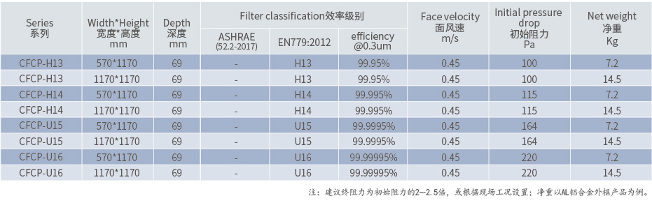 超細玻璃纖維濾紙,95褶/英尺,比常規(guī)產(chǎn)品增加20%的面積,帶來更低的阻力和更長的壽命;