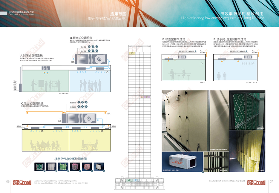 無論是全新樓宇規(guī)劃設(shè)計(jì)還是舊建筑物系統(tǒng)升級(jí),潔斐然(CHINAFIL)都提供一對(duì)一科學(xué)完善的定制化服務(wù),從現(xiàn)場(chǎng)勘察到系統(tǒng)方案設(shè)計(jì)、從過濾器配置到安裝測(cè)試驗(yàn)證。在綜合考慮環(huán)境、需求、能效、成本等眾多因素下,潔斐然以為您提供契合該樓宇的好空氣凈化解決方案為榮。